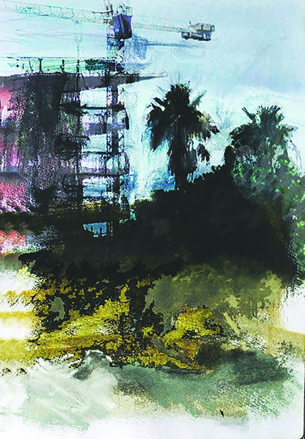 My digital works are nearly always the combination of my own sketches and details, combined with photographs I have taken myself . Sometimes the prints themselves are worked further with various mixed media and collage.
